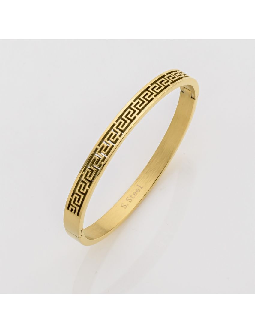 - Α: Το σχέδιο του μαίανδρου είναι ενσωματωμένο με προσοχή στην επιφάνεια της χειροπέδας, προσφέροντας μια ανάγλυφη ή χαραγμένη αίσθηση που ενισχύει την ποιότητα και τη διαχρονικότητα του κοσμήματος.
